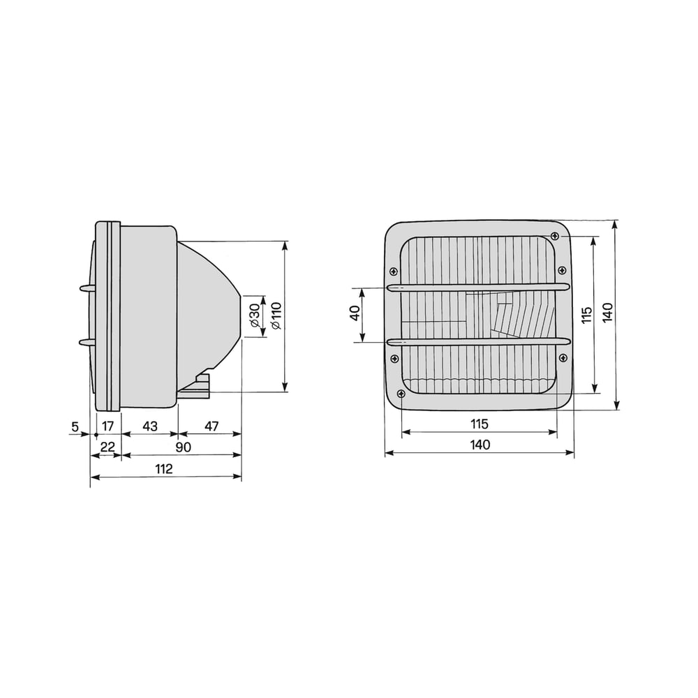- Lichtaustritt: 115 x 115 mm.