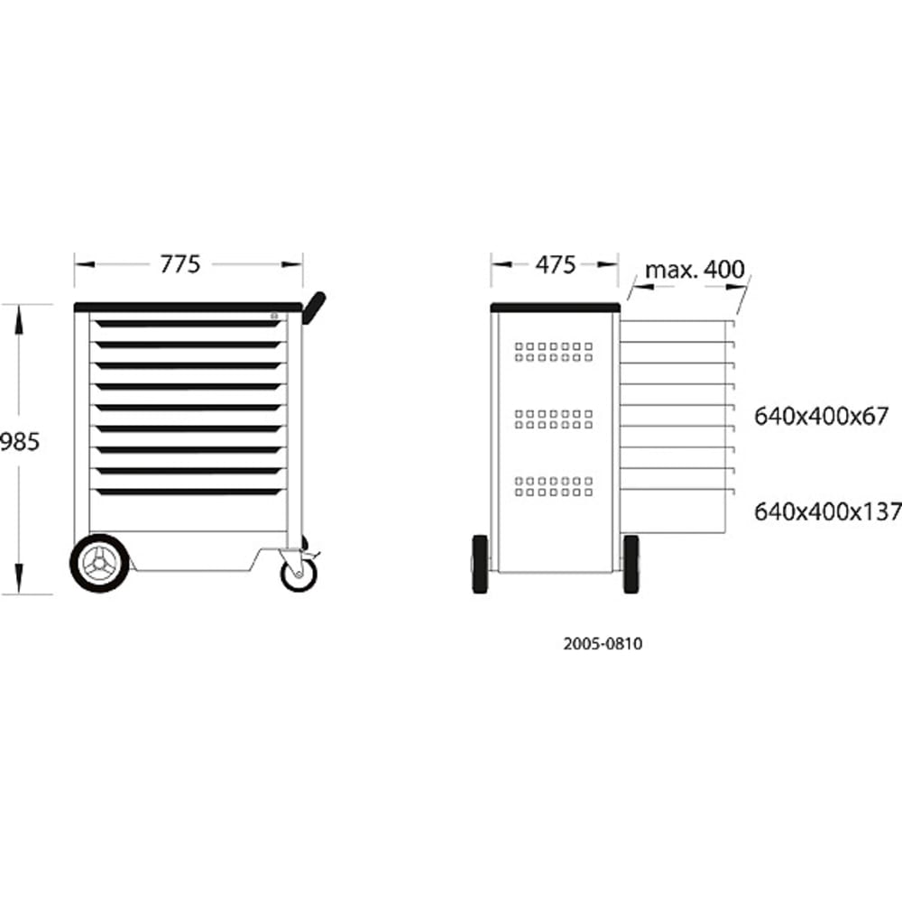- Seitenwände mit Euro-Lochung 10 x 38 mm zur Befestigung von Haken und Werkzeugen