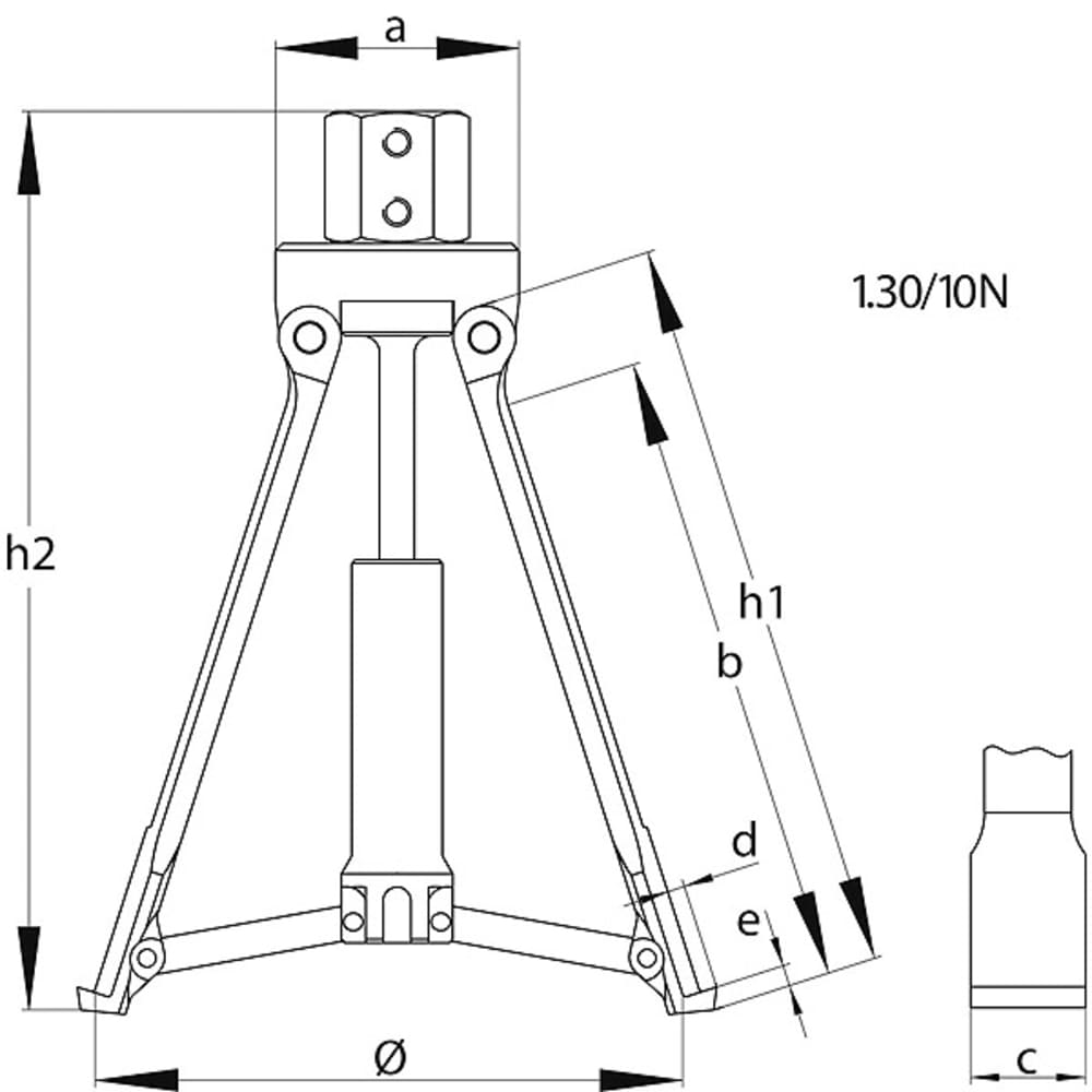 Durch Drehen der Mutter werden die Abziehbacken gespreizt. Das neuentwickelte Spreizsystem arbeitet einfach, stufenlos und zeitsparend. Die scharfkantigen Profile der Abzugbacken setzen sich beim Spreizen bündig unter das Lager