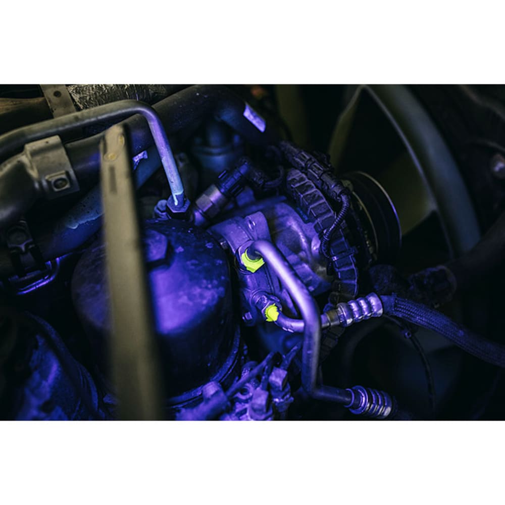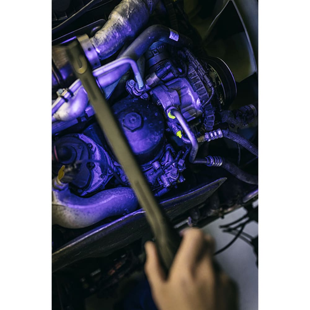 - Stufenlos dimmbar, umschaltbar von LED Licht auf UV-Licht blau-violett (zum Auffinden von Undichtigkeiten z.B. an Klimaanlagen, Wärmepumpen etc.)
