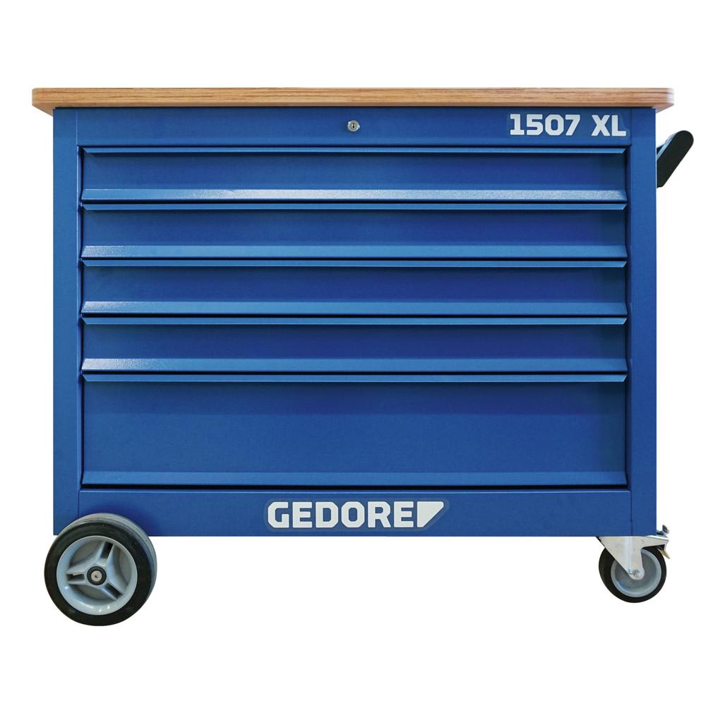 Der robuste MODULO Werkzeug-/ Montagewagen KL-4999-121 A (GEDORE 1507 XL) mit 5 extra breiten Schubladen sowie einer 30 mm starken und massiven Buchen-Multiplex-Arbeitsplatte, kombiniert z.B. mit den Universal Glühkerzen-, Düsenauszieher-, Gegenhalteschlüssel- und Antrieb-Satz Einlagen, bietet einen professionellen mobilen Arbeitsplatz für fachgerechte und effiziente Instandhaltungsarbeiten an Verbrennungsmotoren direkt am Fahrzeug.
