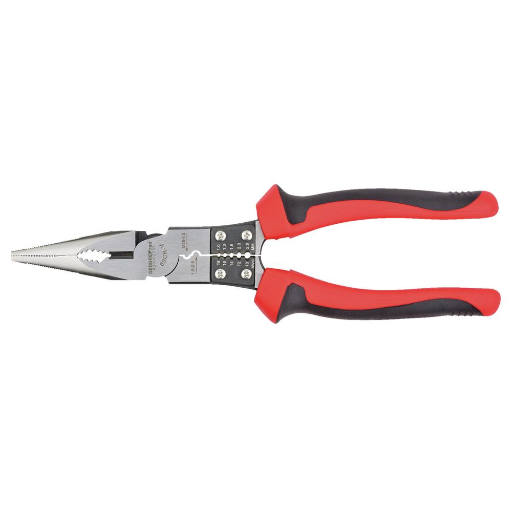 • Flachrundzange mit zusätzlichen Funktionen zum Schneiden, Crimpen und Abisolieren