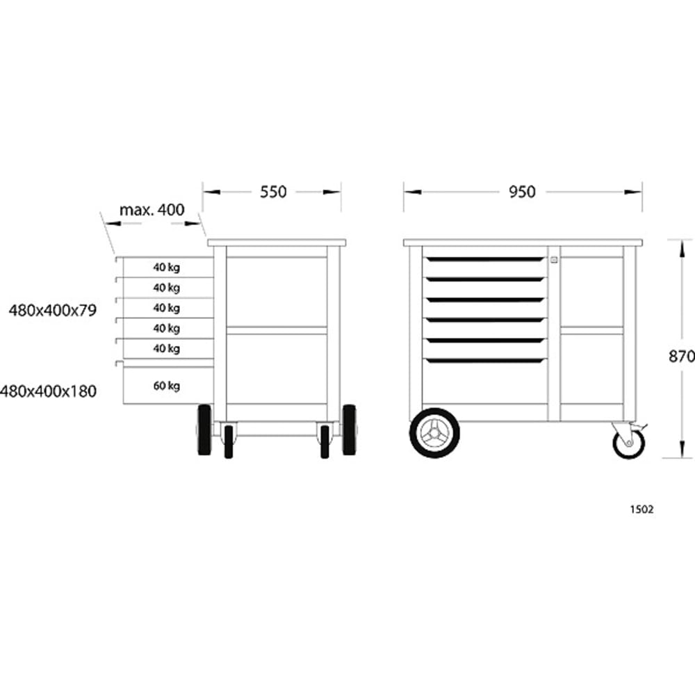 - Tragkraft Schwerlastschublade [kg]: 60 kg