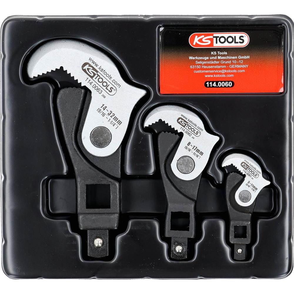 - selbstklemmend auch bei glatten Rohren, Bolzen, Wellen und abgedrehten Köpfen von Sechskant-, Vielzahn-, Spline- und TX-Schrauben