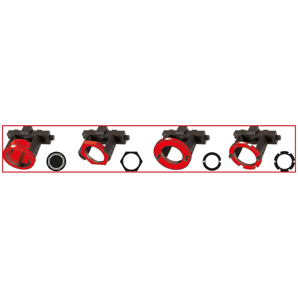 Anwendungsgebiete: 6-kant-, 8-kant-, Nut- und Rundmuttern.