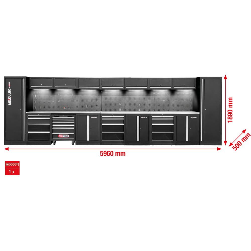 - integrierter Werkstattwagen mit 6 Schubladen (4x 75 mm, 2x 150 mm)