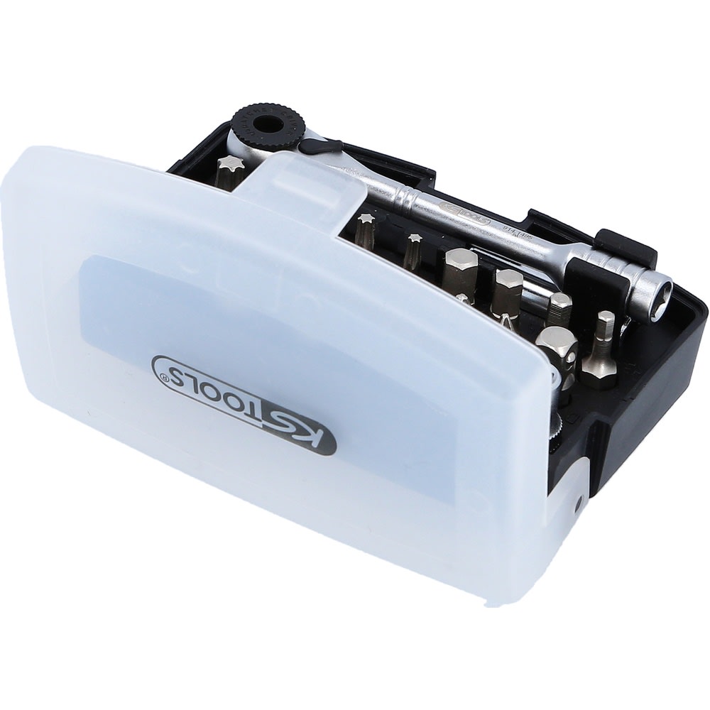 - präzise und ordentliche Anordnung der gängigsten 1/4" Bits