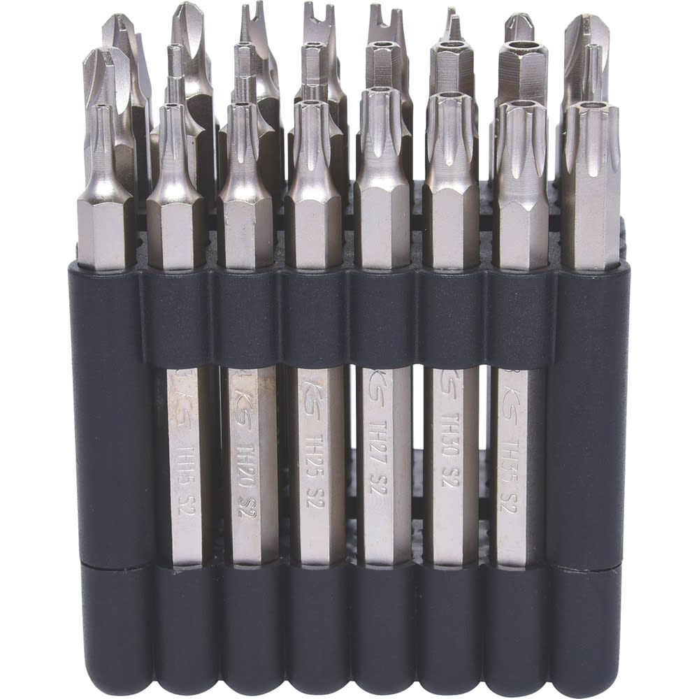 - ordentliche Anordnung der gängigsten 1/4" Sicherheits-Bits