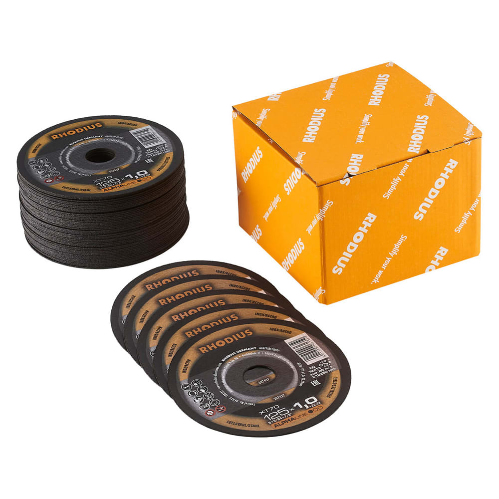Um noch wirtschaftlicher arbeiten zu können (Kosten pro Schnitt), empfehlen sich RHODIUS-Trennscheiben der Qualitätslinien PRO und TOP bzw. mit der Technologie CERAMICON.