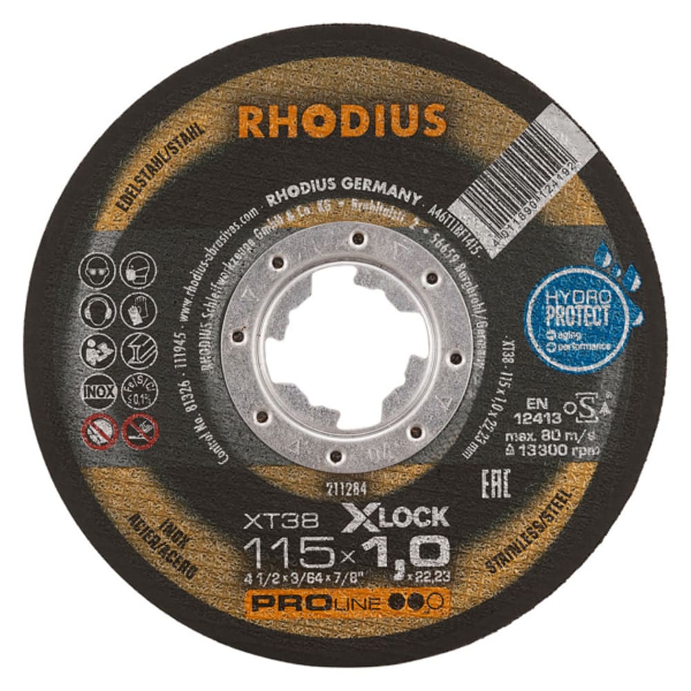 Die extradünne X-LOCK Trennscheibe mit einer Scheibenbreite von 1,0 mm bzw. 1,5 mm ist in den Durchmessern 115 mm und 125 mm erhältlich und für Winkelschleifer unterschiedlichster Hersteller passend. Alle RHODIUS Scheiben für X-LOCK sind zudem rückwärtskompatibel, das heisst: Sie können auch auf einem herkömmlichen Winkelschleifer mit Aufnahme für eine 22,23 Bohrung genutzt werden.