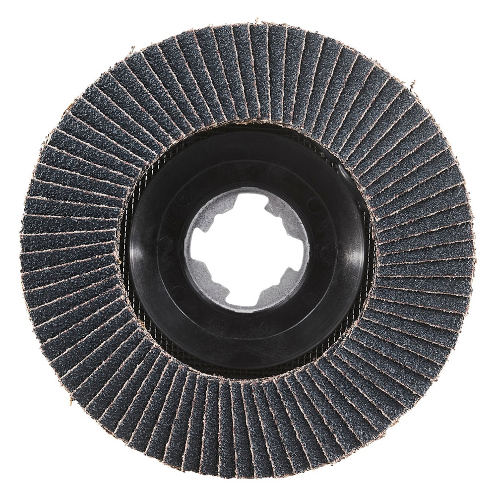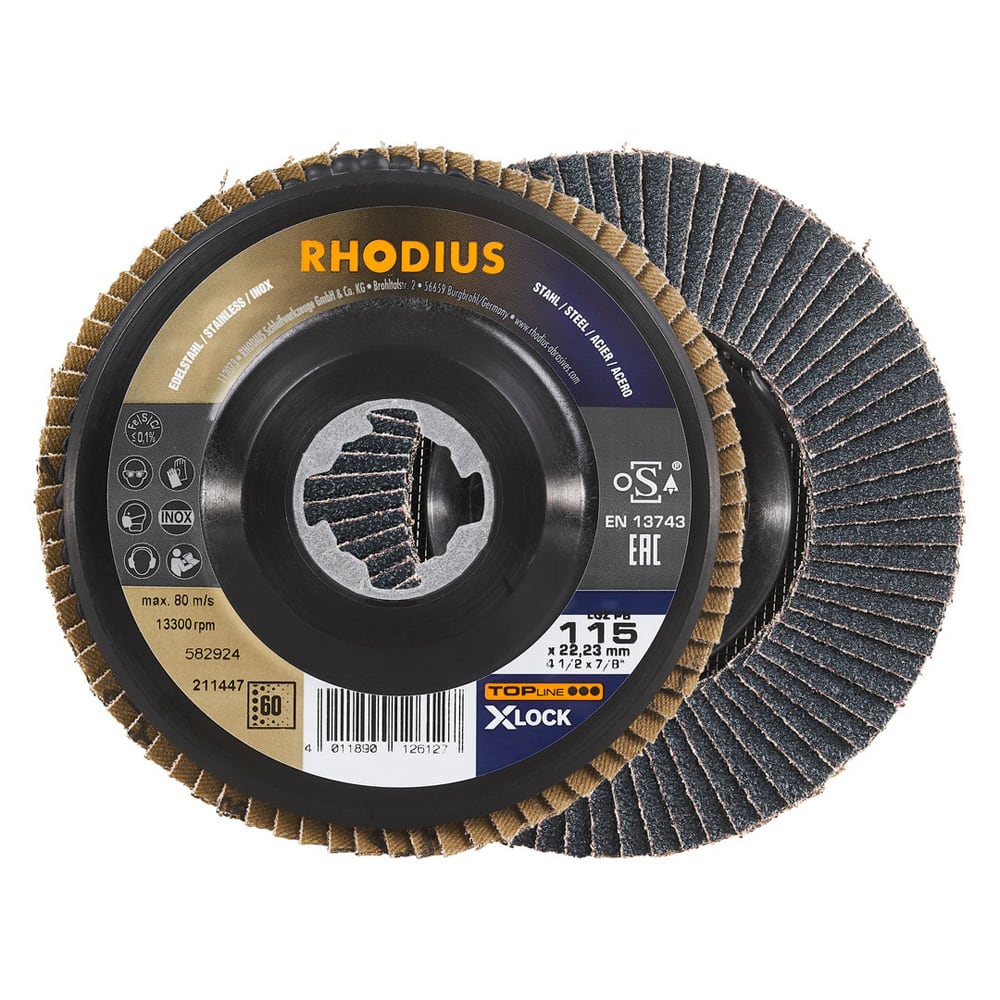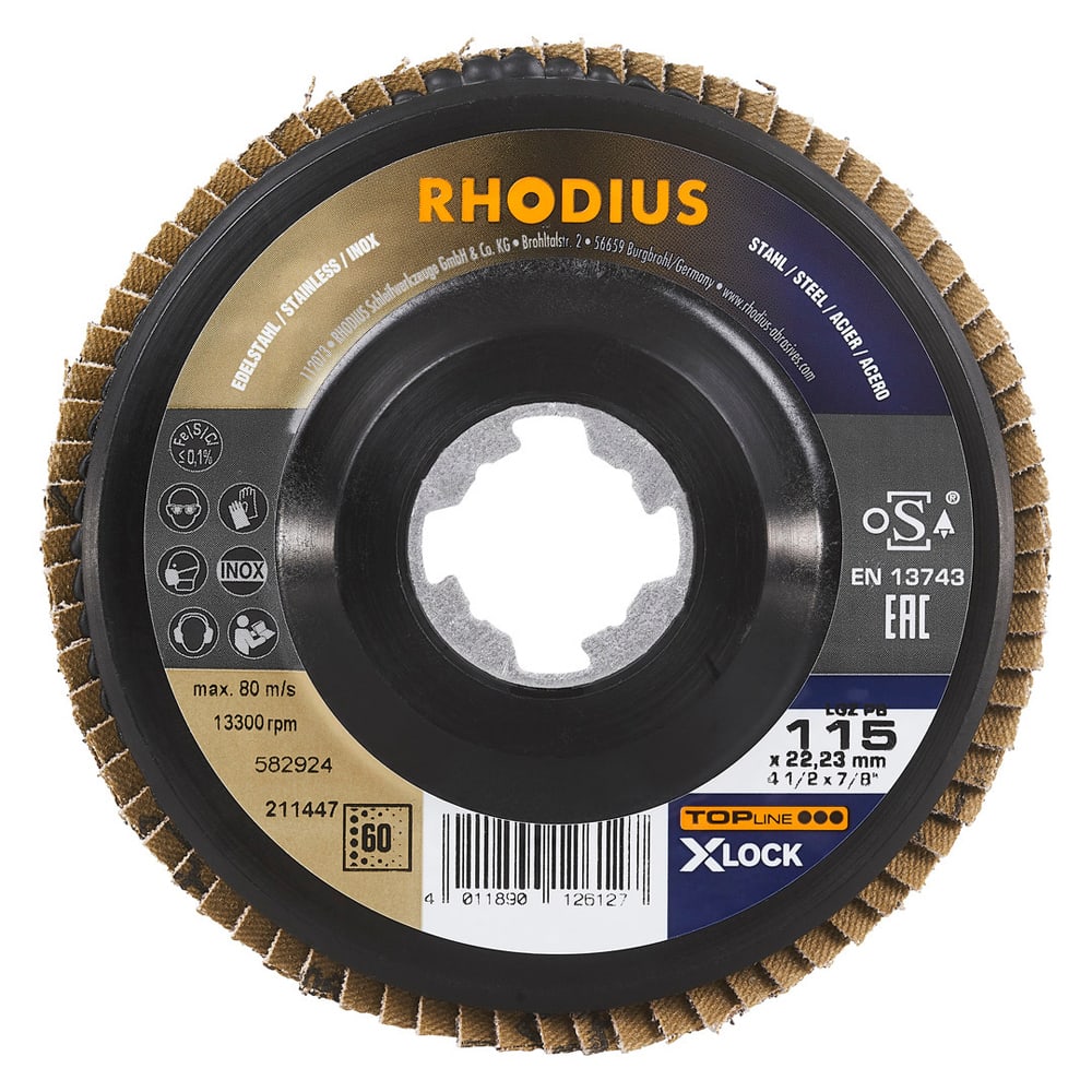 RHODIUS fertigt diese Fächerschleifscheibe auch für Winkelschleifer mit dem X-LOCK Schnellspannsystem.