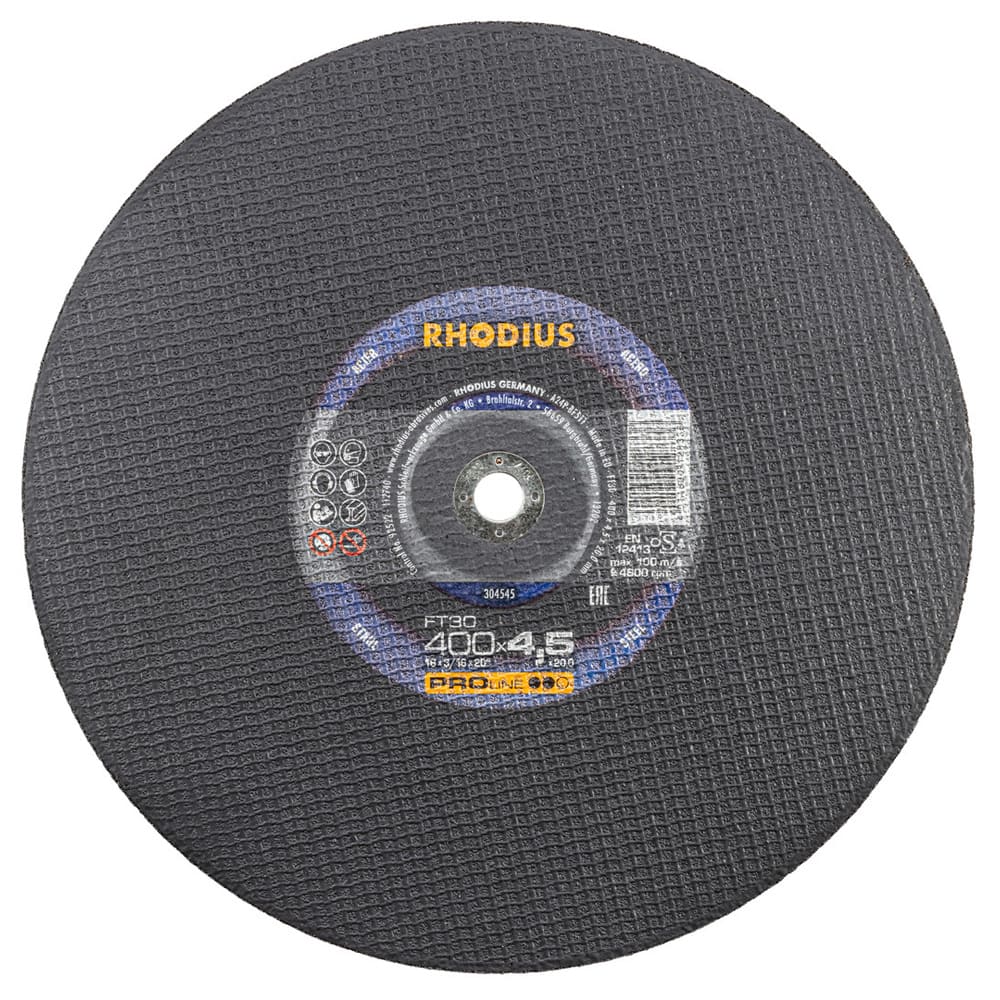 Die Trennscheibe enthält hochwertiges Korund (Aluminiumoxid) und 2 vollflächige Glasfasergewebe. Die Mindestseitenlast für die Trennscheibe beträgt nach EN 12413 und oSa 40 N, bzw. ab Durchmesser 150 mm 50 N. Im Bohrungsring ist das Verfallsdatum (drei Jahre) eingeprägt. Durch aufwendige In-Prozess-Kontrollen in der Produktion wird eine gleichbleibende Qualität gewährleistet. Um ein Maximum an Sicherheit zu bieten, wird jede tausendste Scheibe zerstörend getestet.