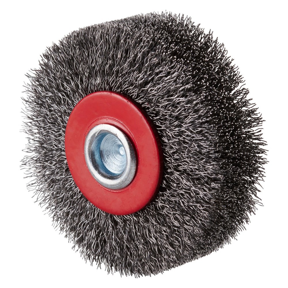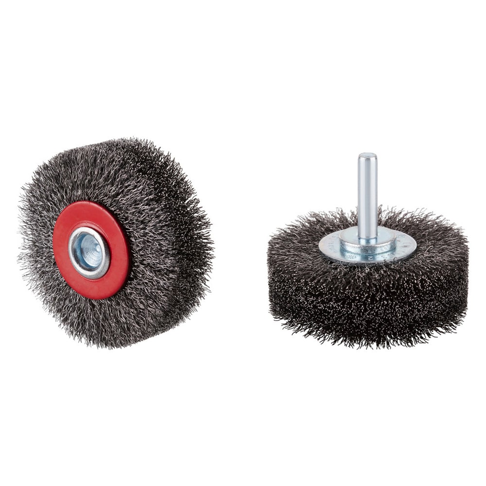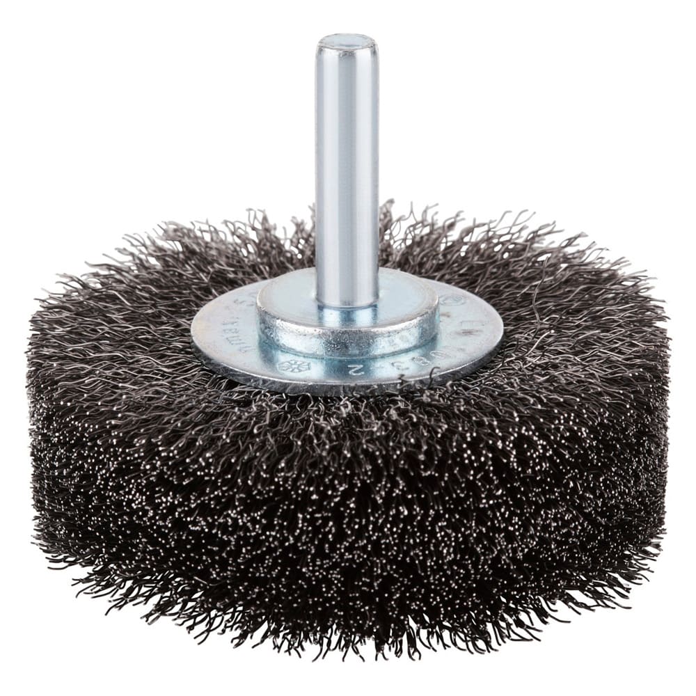 Stahl-Rundbürste mit gewelltem Stahldraht mit 6 mm Schaft für den Einsatz auf Geradschleifern. Mit hoher maximal zulässiger Drehzahl.- Hohe max. Drehzahl