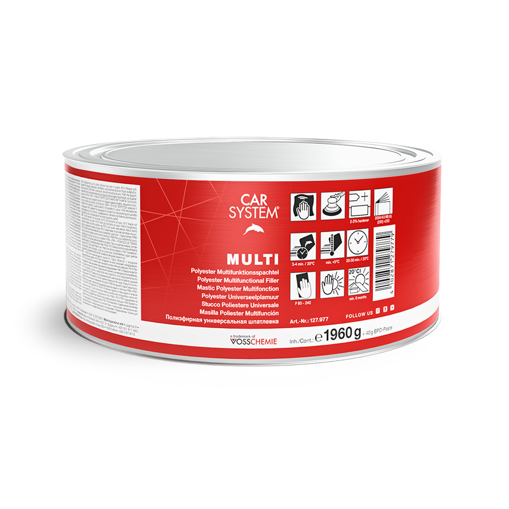 Die Carsystem Polyester Multifunktionsspachtelmasse ist ein Universalspachtel mit Multihaftung zum Füllen von kleinen und grossen Unebenheiten, Kratzern und Schleifspuren. Der Multi ist durch seine cremige Beschaffenheit sehr leicht aufzuziehen.