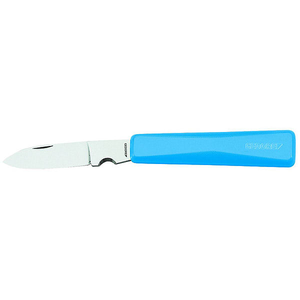 Mit blauem Kunststoffgriff