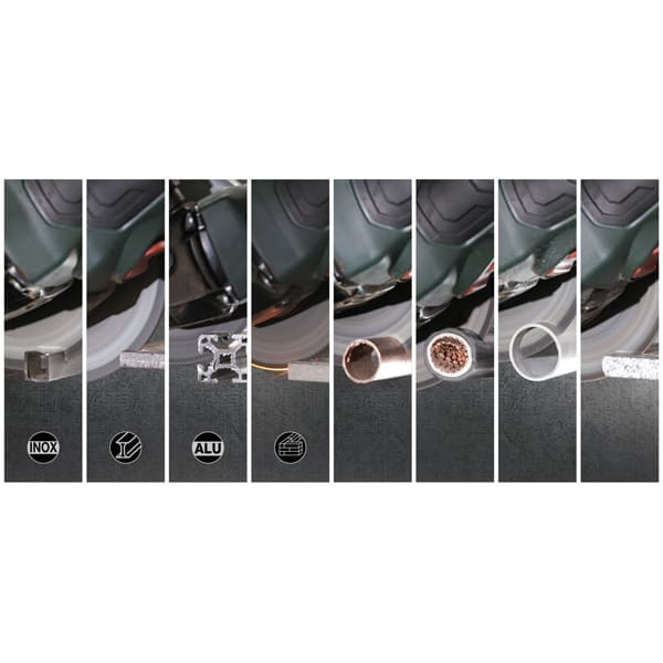 Stahl (Schwarzstahl auch Baustahl, St37, S235JR, 1.0037 oder Karbonstahl genannt) und Stahlguss, Guss ( z.B. GJS, GJL, etc..), Titan aber auch für Betonerzeugnisse, Estrich, Kalksandstein, Naturstein, Marmor sowie für Aluminium und weitere NE-Metalle wie Kupfer, Messing, Bronze, etc. abgestimmt.