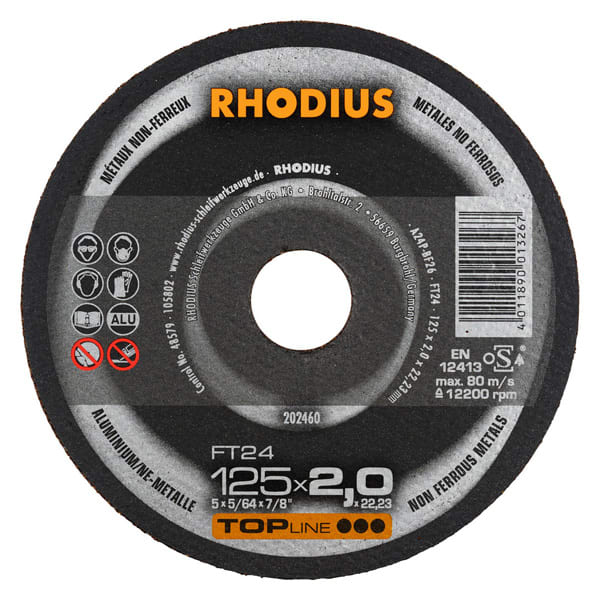 Die Freihandtrennscheibe mit einer Scheibenbreite von 2,0 mm und 2,5 mm ist in den Durchmessern 125 mm bis 230 mm erhältlich.