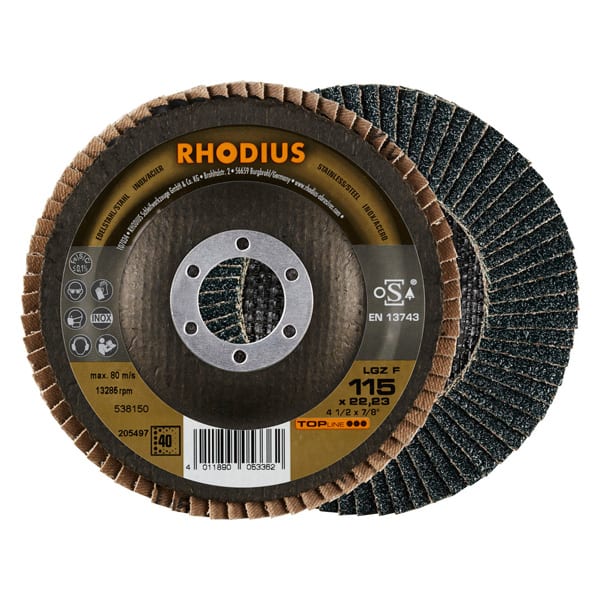 Bei der LGZ F wird als Schleifkorn ein hochwertiges Zirkonkorund verwendet. Alle RHODIUS-Lamellenscheiben sind zudem eisen- und schwefelfrei.