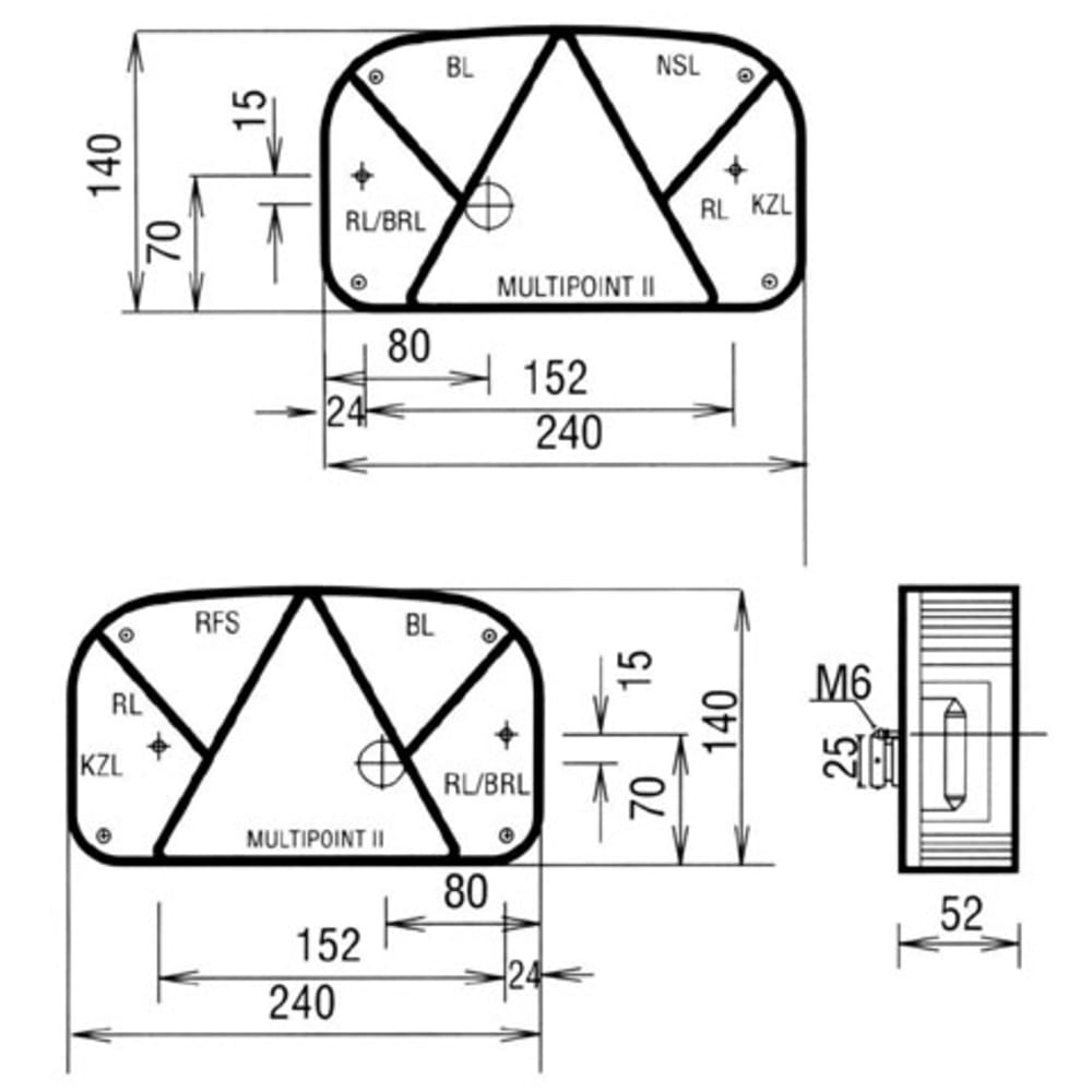 - Feu arrière-stop-clignotant-plaque. catadioptre triangulaire.