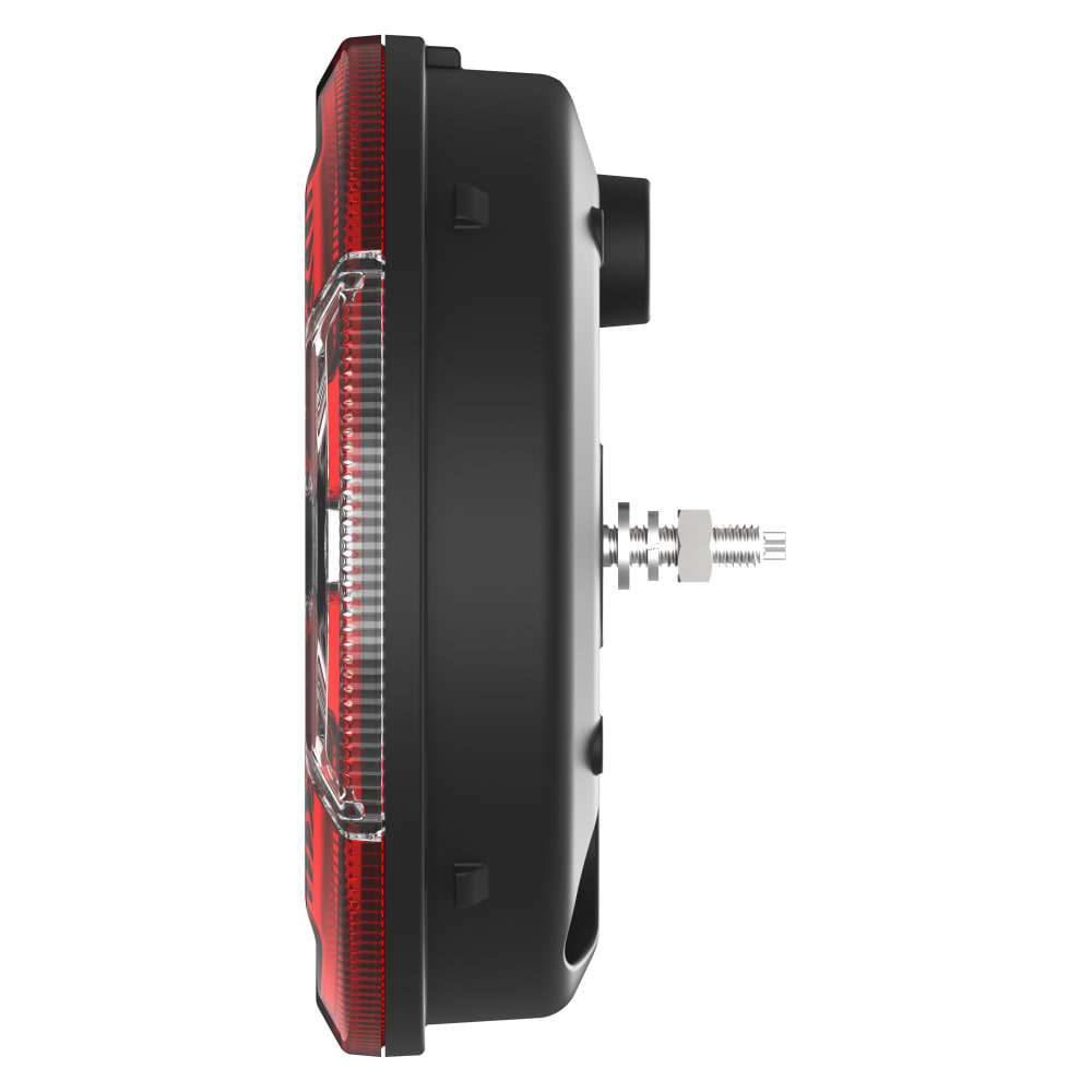 Grâce à la technologie LED la plus moderne, l'Ecoround offre un éclairage économe en énergie et performant. La technologie innovante Glowing Body garantit un feu arrière large et homogène, assurant encore plus de sécurité sur les routes. La fonction de base de l'Ecoround inclut de série le contrôle de panne des clignotants conformément à la norme ISO 13207-1. En option, la lampe est également disponible avec un dispositif de contrôle de marquage latéral intégré (SMCG) et/ou des sorties de feux de position.