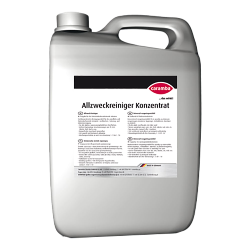 Aufgrund der hohen Konzentration sollte Caramba Intensiv Allzweck-Reiniger je nach Art und Intensität der Verschmutzung 1:5 bis 1:50 mit Wasser verdünnt werden. Die fertige Gebrauchslösung wird entweder auf die zu reinigende Fläche aufgesprüht oder mit Schwamm aufgetragen. Nach kurzer Einwirkzeit mit sauberem Tuch oder Schwamm feucht nachwischen oder mit Wasser abspülen. Darüber hinaus kann Caramba Intensiv Allzweck-Reiniger über HD-Gerät bzw. als Tauchbadreiniger eingesetzt werden.