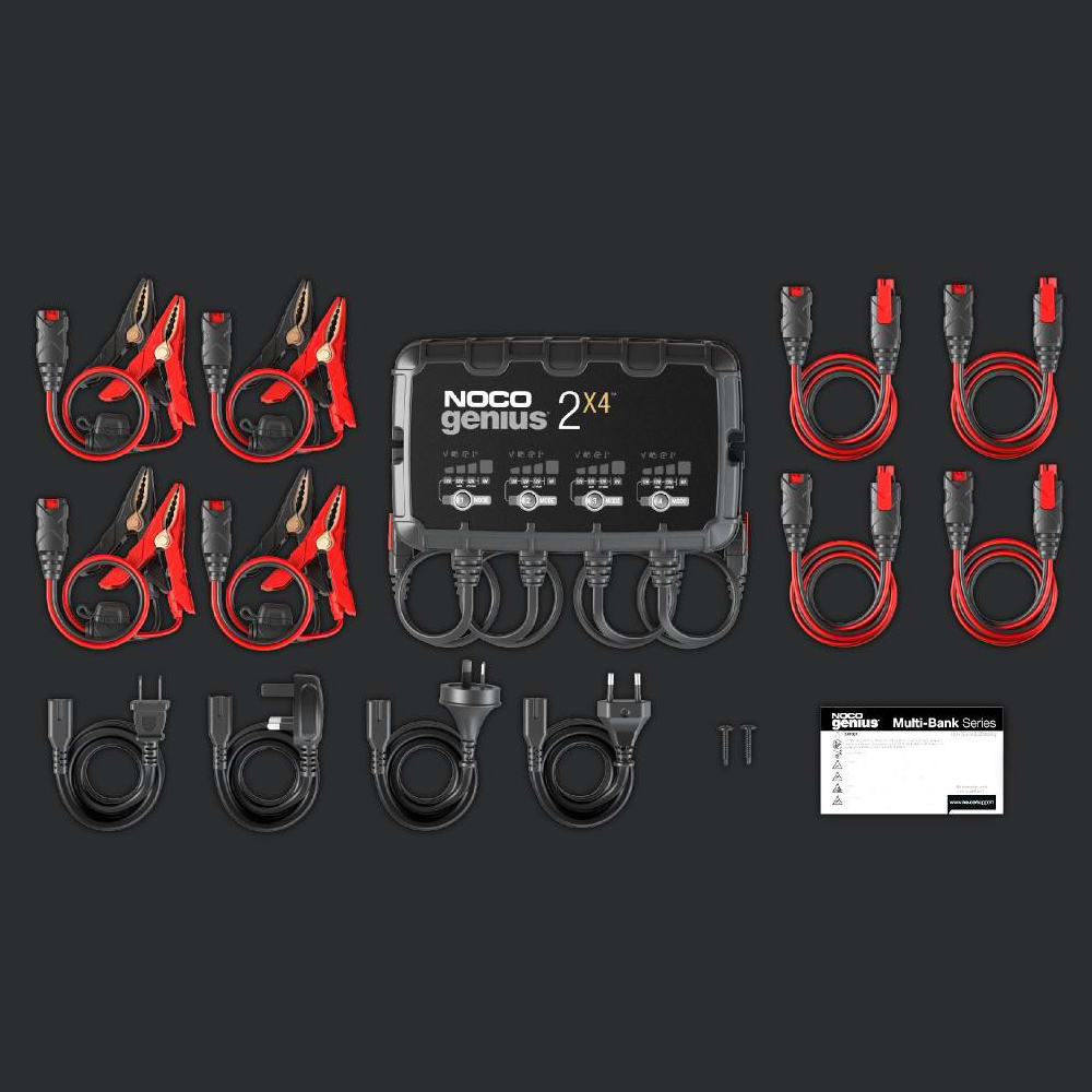 - Voici le tout nouveau GENIUS2X4 - un chargeur de batterie à quatre banques, mainteneur de batterie, et désulfateur de batterie - la solution tout-en-un parfaite pour la maintenance de batterie.