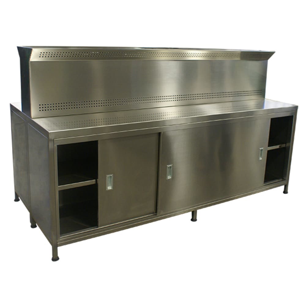 Table mélange en acier inox avec capot d'extraction double 240x110x139cm