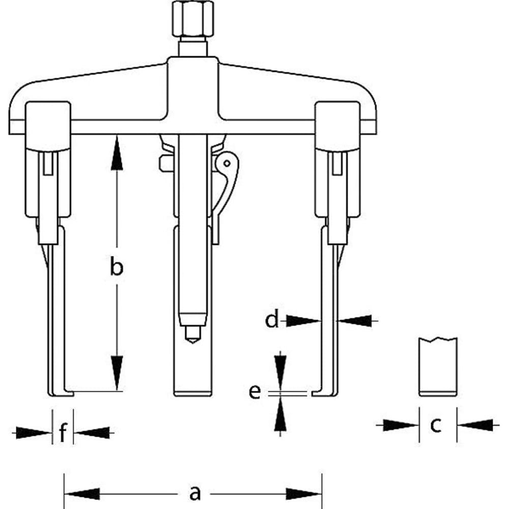 - Profondeur de serrage 200 mm = épaisseur du pied du crochet (e) 2,0 mm, max. 2,0 t