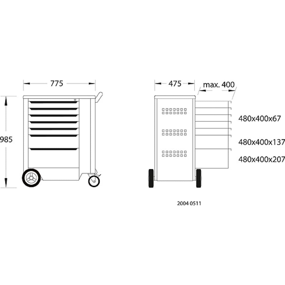 Dimensions : H 985 x L 775 x P 475 mm