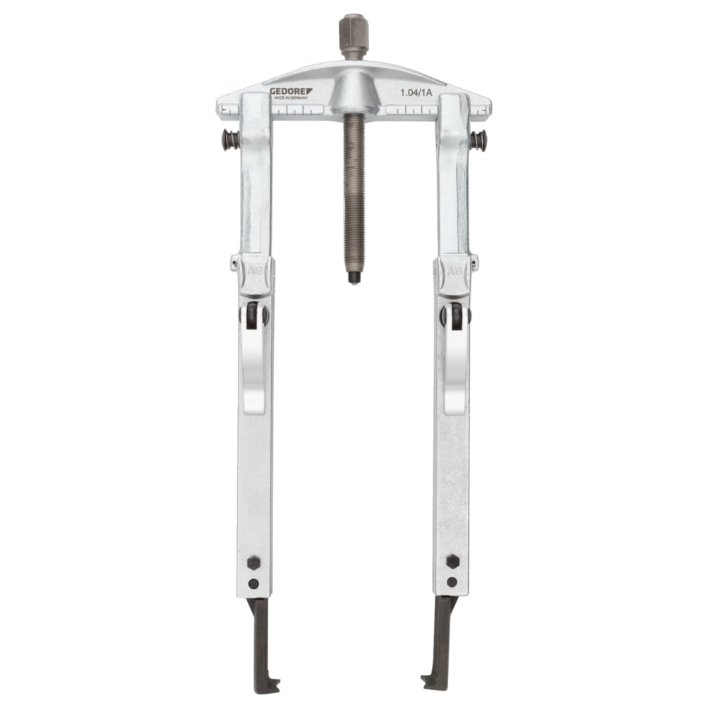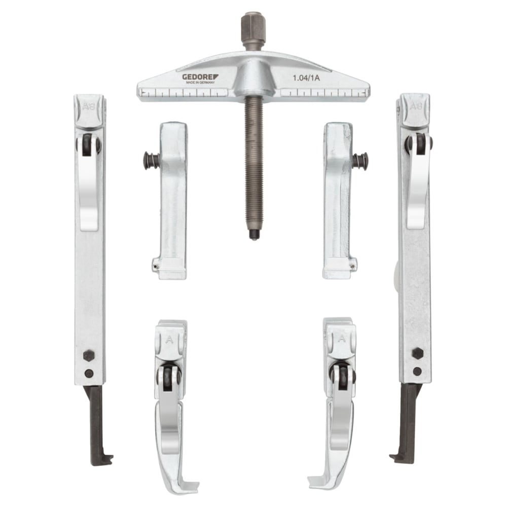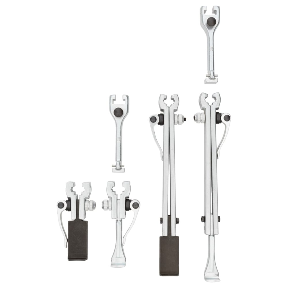 Pour desserrer les connexions coincées sur les arbres ou dans les boîtiers, Grâce aux largeurs de portée possibles, réglables en continu jusqu'à 130 mm / profondeurs de serrage 100, 200, 250, 350 mm, Travail variable, rapide et sûr grâce au mécanisme de serrage rapide, au frein à crochet, au crochet pour les espaces de montage restreints, Combinaison de 8 extracteurs différents possible