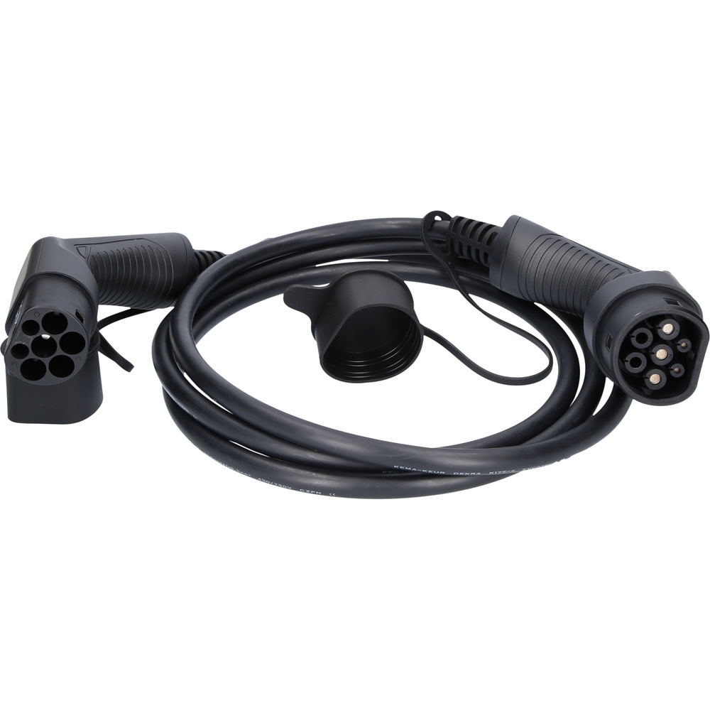 Avec ce câble de qualité mode 3, vous pouvez charger votre véhicule électrique ou hybride très rapidement, en toute sécurité et fiabilité. La protection anti-surchauffe intégrée coupe l’alimentation en cas d’émission de chaleur trop élevée et empêche ainsi les dommages au niveau de la batterie du véhicule ou du chargeur. Avec une puissance de charge jusqu’à 7,4 kW et un câble d’une longueur de 3 mètres, ce câble de charge est idéal pour le chargement à la maison ou au niveau d’un chargeur public. Avec son connecteur ergonomique et son câble résistant de qualité supérieure, ce câble de charge est un partenaire fiable pour charger votre véhicule électrique ou hybride. Vous pouvez également utiliser ce câble pour charger un véhicule sur des chargeurs de maximum 7,4 kW, puisque les unités de chargement mode 3 sont conçues de façon à garantir une alimentation électrique adaptée à votre véhicule via le câble. Le connecteur de charge peut être verrouillé aussi bien côté chargeur que côté véhicule. Pour cela, il suffit de verrouiller votre voiture. Les connecteurs sont alors bien fixés sur votre voiture et le chargeur et vous pouvez laisser votre voiture électrique se charger, en toute confiance. Votre nouveau câble de charge est fourni avec une pochette pratique qui permet de la ranger en toute sécurité lorsqu’il n’est pas utilisé.