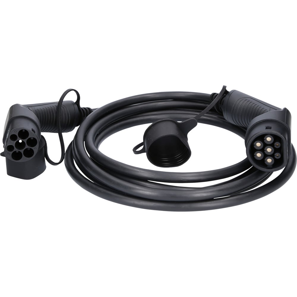 Avec ce câble de qualité mode 3, vous pouvez charger votre véhicule électrique ou hybride très rapidement, en toute sécurité et fiabilité. La protection anti-surchauffe intégrée coupe l’alimentation en cas d’émission de chaleur trop élevée et empêche ainsi les dommages au niveau de la batterie du véhicule ou du chargeur. Avec une puissance de charge jusqu’à 11 kW et un câble d’une longueur de 5 mètres, ce câble de charge est idéal pour le chargement à la maison ou au niveau d’un chargeur public. Avec son connecteur ergonomique et son câble résistant de qualité supérieure, ce câble de charge est un partenaire fiable pour charger votre véhicule électrique ou hybride. Vous pouvez également utiliser ce câble pour charger un véhicule sur des chargeurs de maximum 11 kW, puisque les unités de chargement mode 3 sont conçues de façon à garantir une alimentation électrique adaptée à votre véhicule via le câble. Le connecteur de charge peut être verrouillé aussi bien côté chargeur que côté véhicule. Pour cela, il suffit de verrouiller votre voiture. Les connecteurs sont alors bien fixés sur votre voiture et le chargeur et vous pouvez laisser votre voiture électrique se charger, en toute confiance. Votre nouveau câble de charge est fourni avec une pochette pratique qui permet de la ranger en toute sécurité lorsqu’il n’est pas utilisé.