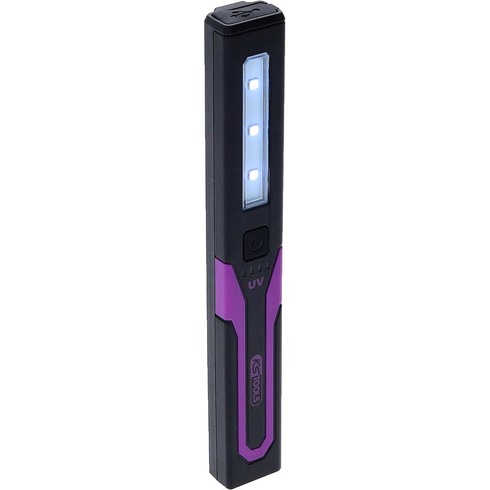 - 2 modes d’éclairage : LED UV frontale et spot LED UV
