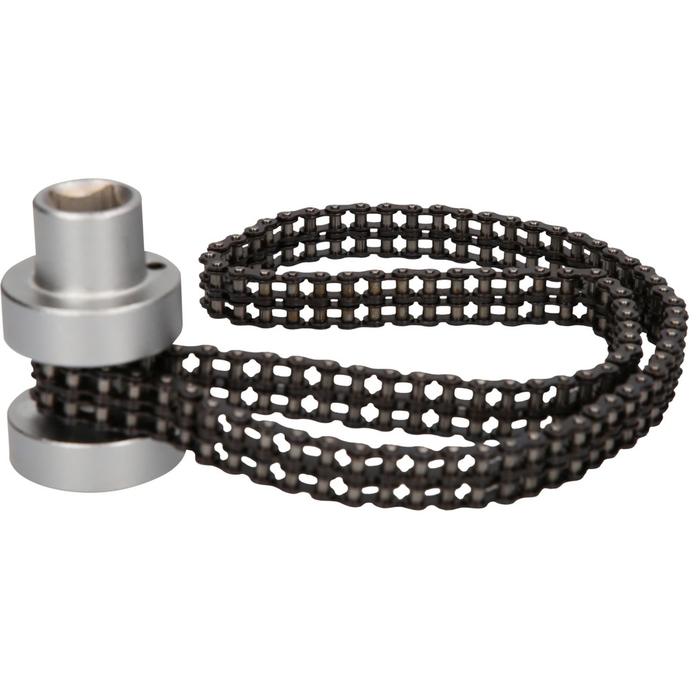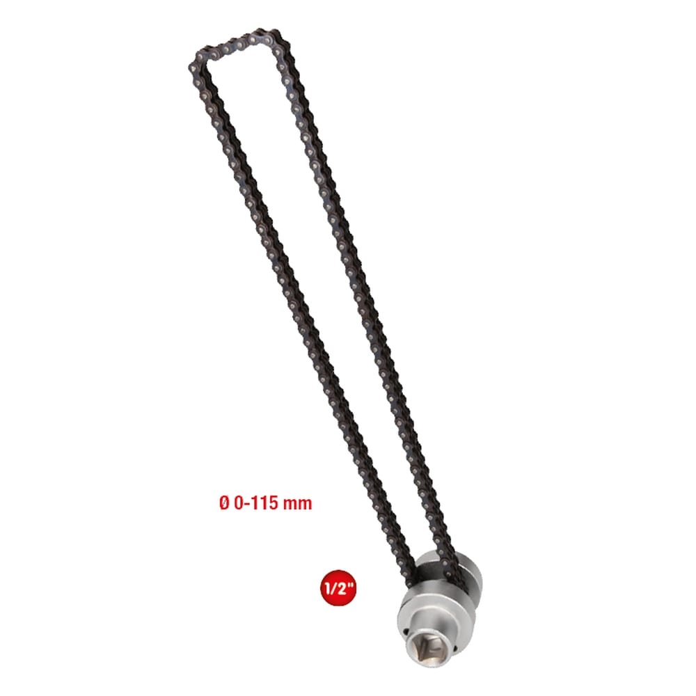 - la double chaîne de serrage maintient fermement le filtre et permet de le détacher par transfert de force