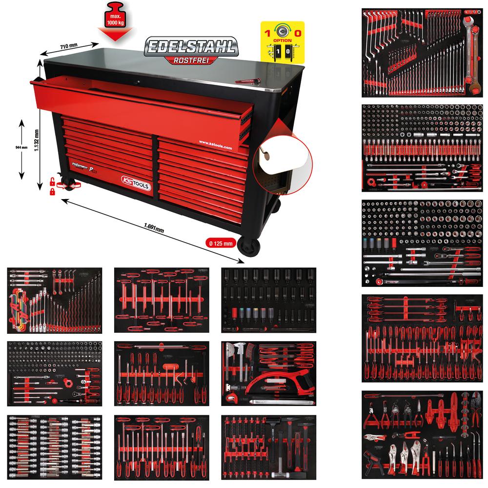 Composition pour servante d’atelier Performanceplus P45 avec 950 outils pour 13