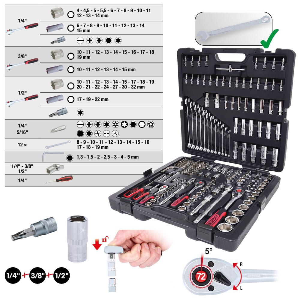 | Carré d'entraînement en pouce | 1/4"+3/8"+1/2" |