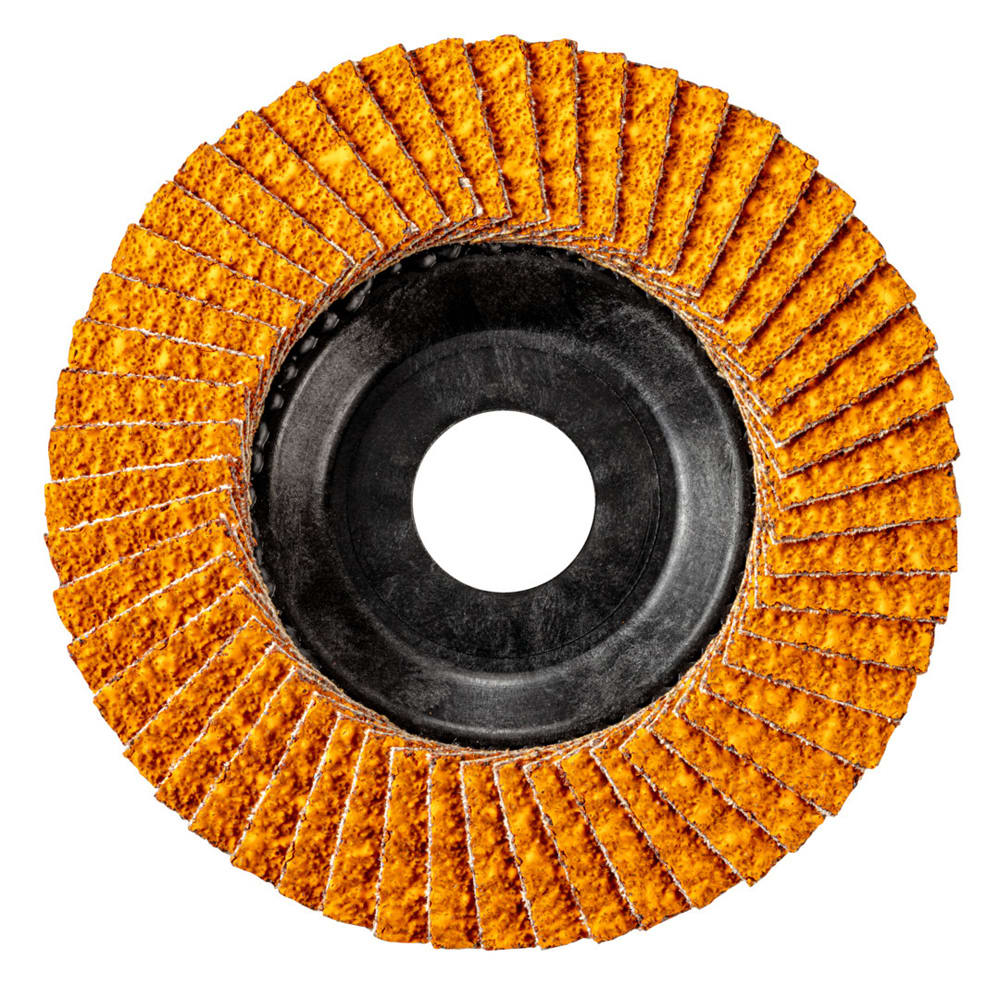 Lamelles extra-longues, étroitement superposées, pour une durée de vie particulièrement élevée. Également avec support ajustable pour une utlisation complète des lamelles. Meulage idéal des cordons de soudure.- Grain mixte à base de zirconium et de céramique pour une capacité d’enlèvement élevée