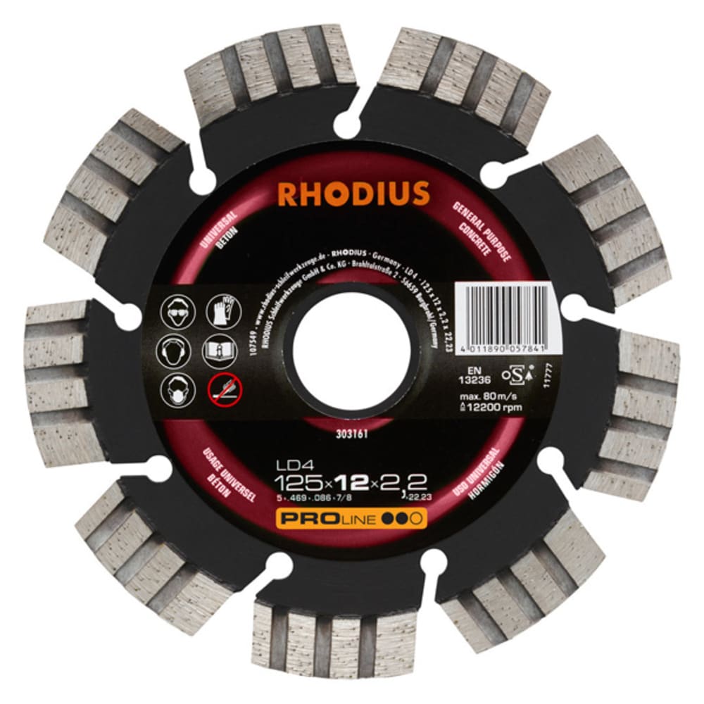Le LD4 est doté d'un bord de coupe segmenté. Il atteint ainsi une vitesse de coupe très élevée avec une durée de vie maximale. Cet outil a été contrôlé conformément aux normes EN13236 et oSA et peut être utilisé tant à sec que pour des coupes humides. Grâce à son diamant industriel de qualité, le LD4 est particulièrement performant. Ce disque est en outre soudé au laser.
