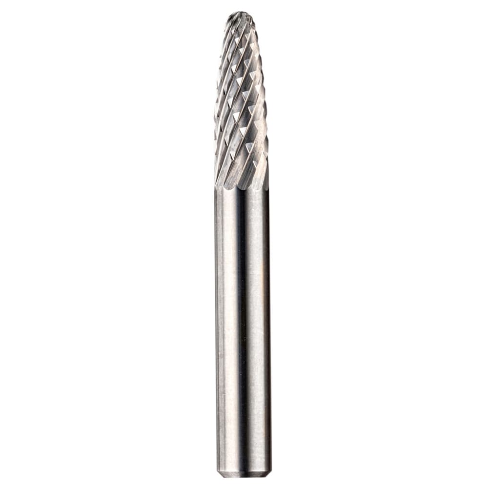 Les fraises de forme F (ogive à bout arrondi) conformes à la norme DIN 8032 sont disponibles dans des diamètres de tête de 6 à 12,7 mm. Le diamètre de la tige est de 6 mm.