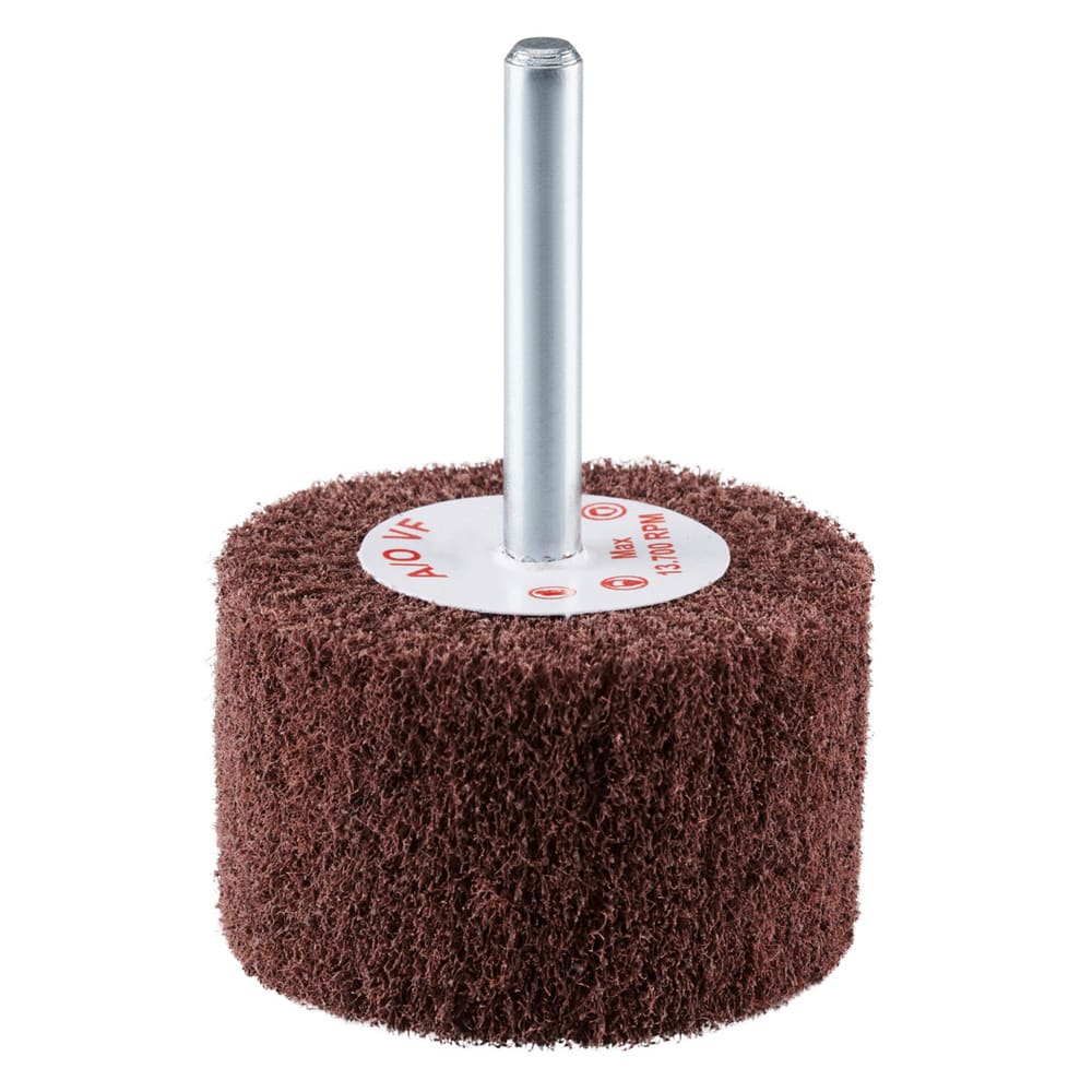 La roue à lamelles en non-tissé VS de RHODIUS a été conçue pour être utilisée sur les meuleuses droites ou les machines à entraînement d’arbre flexible et logement de 6 mm.