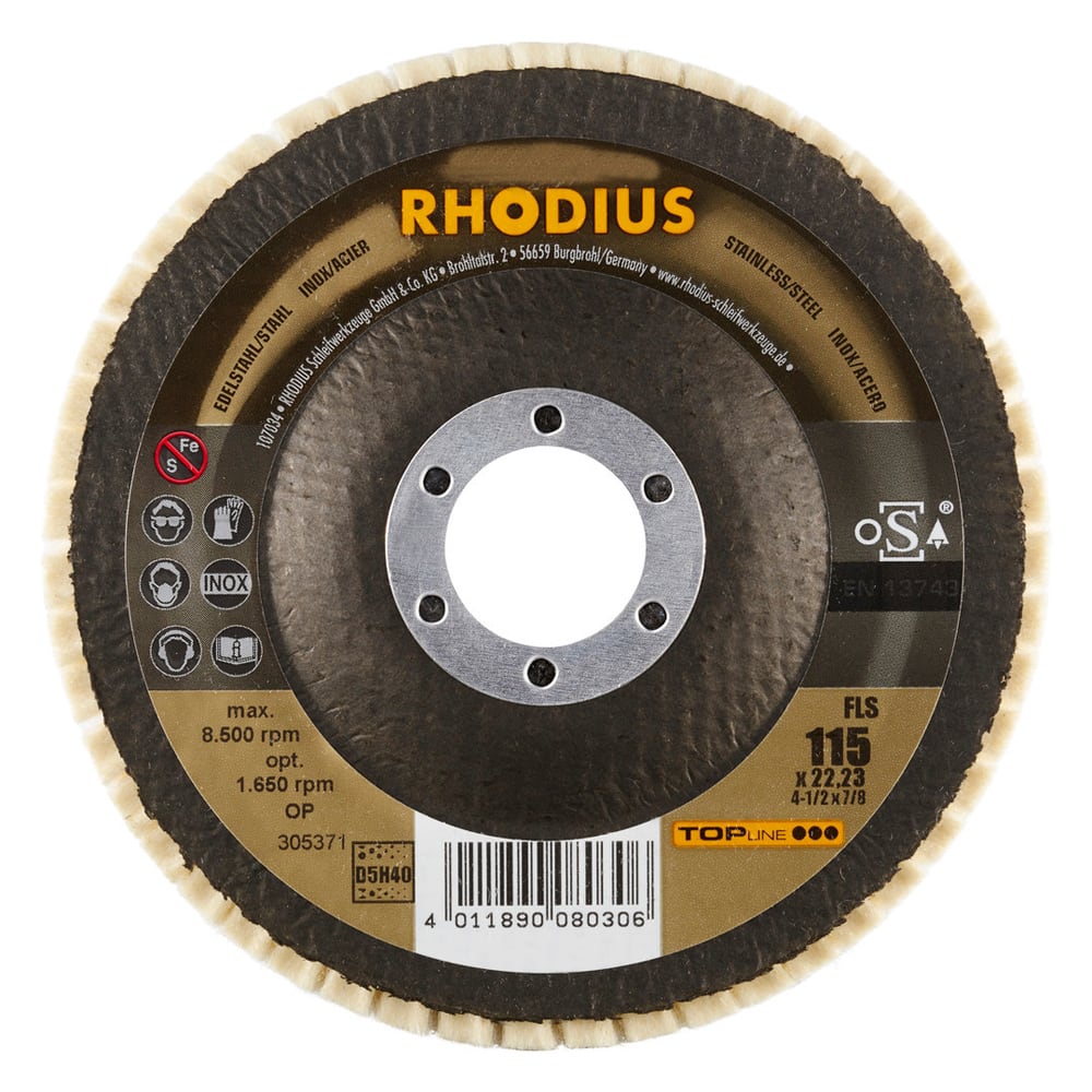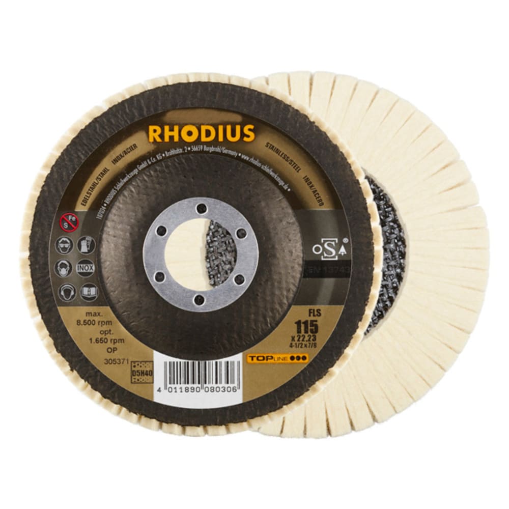 Le feutre de polissage FLS a été spécialement développé pour le traitement de l’acier inoxydable (acier VA, inox), p. ex. 1.4301 (X5CrNi18-10 ou 304), ainsi que de l’acier (acier au carbone, également appelé acier de construction, St37, S235JR, 1.0037 ou acier noir) et de la fonte d’acier, mais aussi de l’aluminium et d’autres métaux non-ferreux, tels que le cuivre, le laiton, le bronze, etc. Avec le FLS de RHODIUS, l’utilisateur obtiendra de très bons résultats sur tous les matériaux indiqués ici.