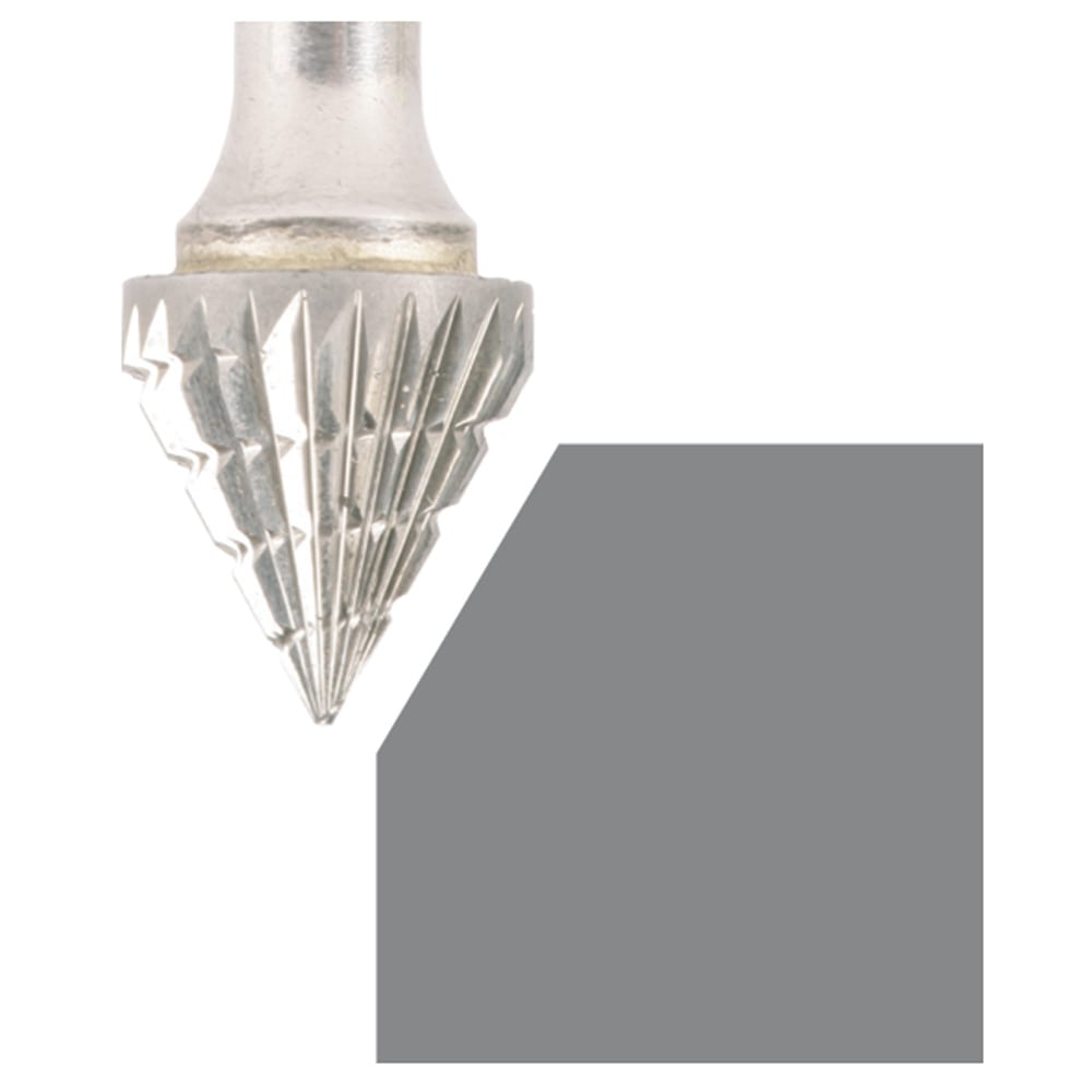 Fraise en carbure de forme J (KSJ) : conique à bout pointu 60°.- Grande précision de concentricité
