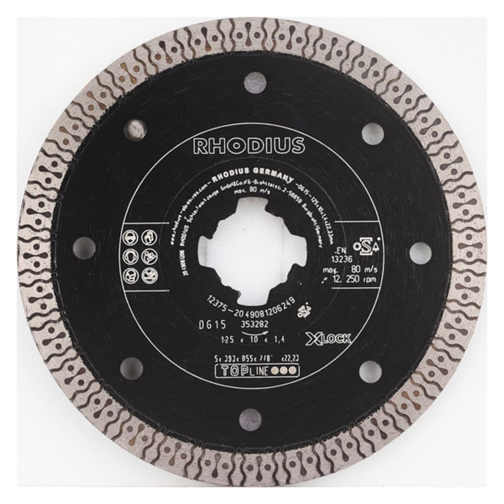 Ces disques de tronçonnage diamant sont disponibles dans des diamètres de 115 et 125 mm. Les disques X-LOCK de RHODIUS dans les diamètres de 115 et 125 mm ont été conçus pour les meuleuses d'angle de nombreux fabricants. Tous les disques RHODIUS pour X-LOCK sont, en outre, compatibles avec les modèles antérieurs, ce qui signifie qu’ils peuvent également être utilisés sur une meuleuse d'angle traditionnelle avec logement pour alésage de 22,23.