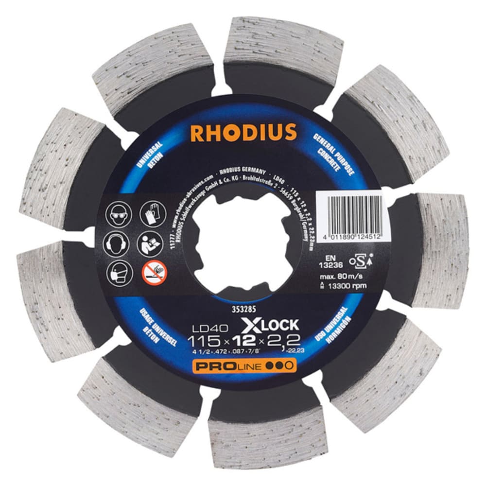Ces disques de tronçonnage diamant sont disponibles dans des diamètres de 115 et 125 mm. Les disques X-LOCK de RHODIUS dans les diamètres de 115 et 125 mm ont été conçus pour les meuleuses d'angle de nombreux fabricants. Tous les disques RHODIUS pour X-LOCK sont, en outre, compatibles avec les modèles antérieurs, ce qui signifie qu’ils peuvent également être utilisés sur une meuleuse d'angle traditionnelle avec logement pour alésage de 22,23.