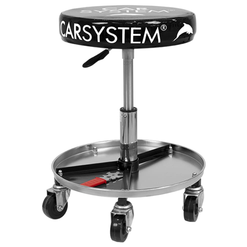 Le tabouret d'atelier Carsystem Werkstatt Sitzhocker a été conçu pour les travaux de polissage et de ponçage. Equipé d'un plateau de rangement magnétique pour l'outillage et la visserie.
