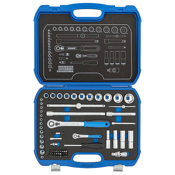 La nouvelle boîte à cliquet en matière plastique GEDORE convient aux tournevis pour l'industrie, l'automobile, le bricolage et les loisirs. Contrôle de la présence en ordre de tous les outils grâce aux supports en mousse bicolore de l'outil Check-Tool