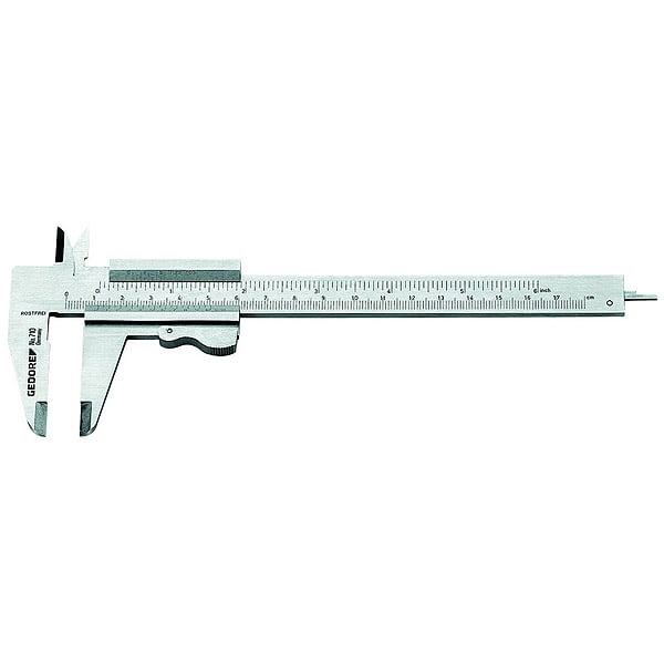 Avec une graduation en millimètres et en pouces, vernier 1/20 et 1/128".