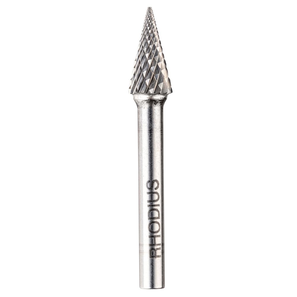 Les fraises de forme M (conique à bout pointu) conformes à la norme DIN 8032 sont disponibles dans des diamètres de tête de 9,6 et 12,7 mm. Le diamètre de la tige est de 3 mm.
