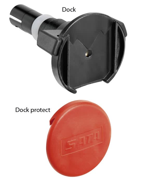 - Le SATA adam 2 mini dock remplace le micromètre d'air du pistolet de laquage.Le deuxième élément, SATA adam 2 display, est connecté au "dock" où il s'enclenche