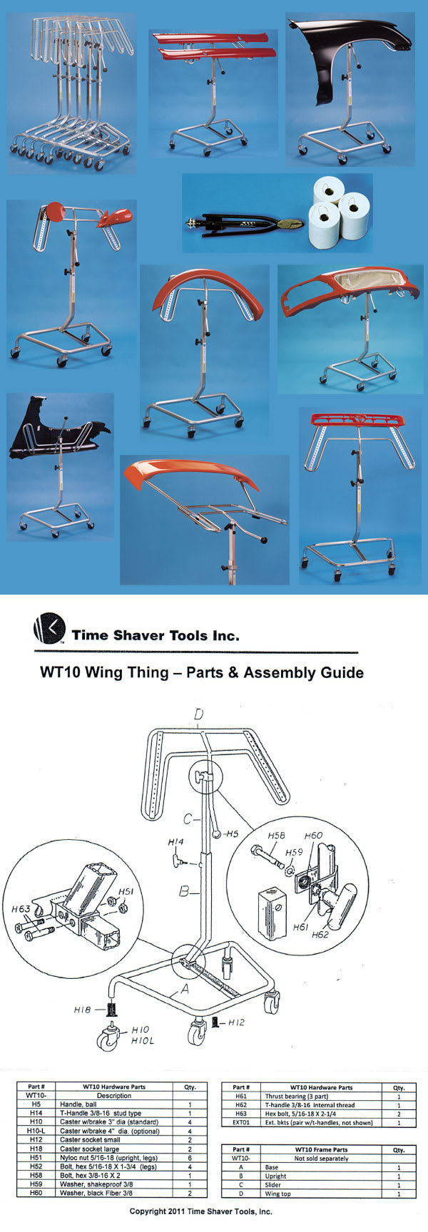 Le support de laquage aux formes parfaites maintient - durant la réparation, le masticage, le ponçage, le laquage et le séchage - les garde-boue et autres petites pièces, vissés ou fixés au moyen d'un fil de fer sur les deux étriers pourvus de trous. Le design ouvert permet au jet de laquage d'atteindre sans problèmes tous les coins ou passages de roue intérieurs.